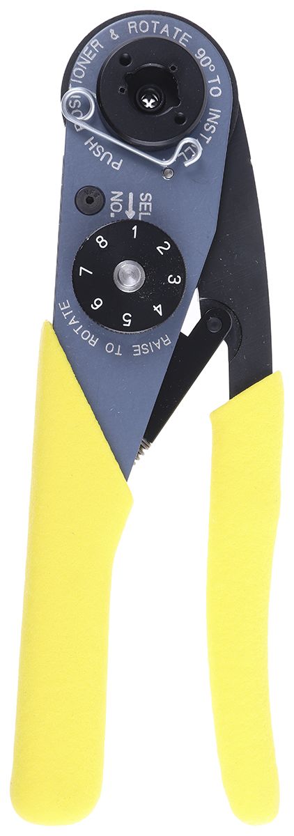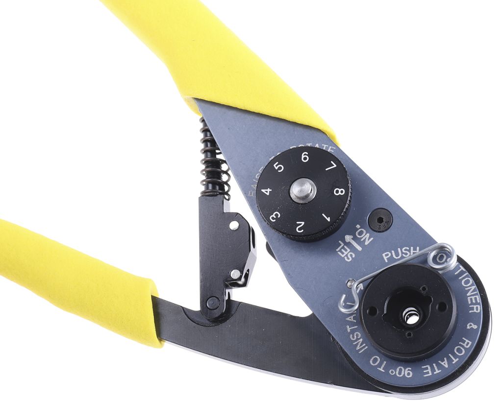 An 8 indent selector knob on the tool enables the correct crimp setting to be selected and a positioner guide locks the positioner firmly in place.