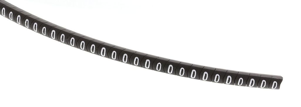 HellermannTyton Helagrip Slide On Cable Markers, Pre-printed “0”, White on Black, 2 → 5mm Dia. Range