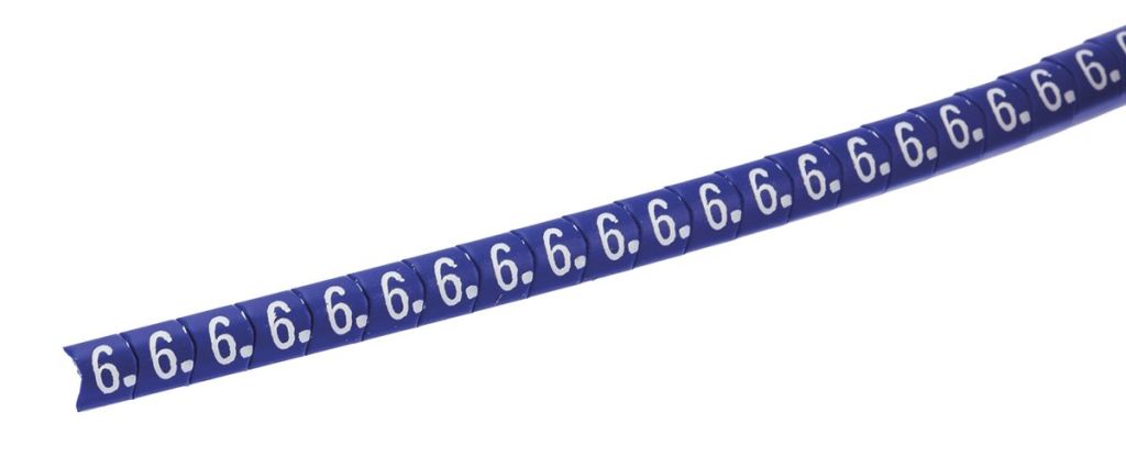 HellermannTyton Helagrip Slide On Cable Markers, Pre-printed “6”, White on Blue, 2 → 5mm Dia. Range