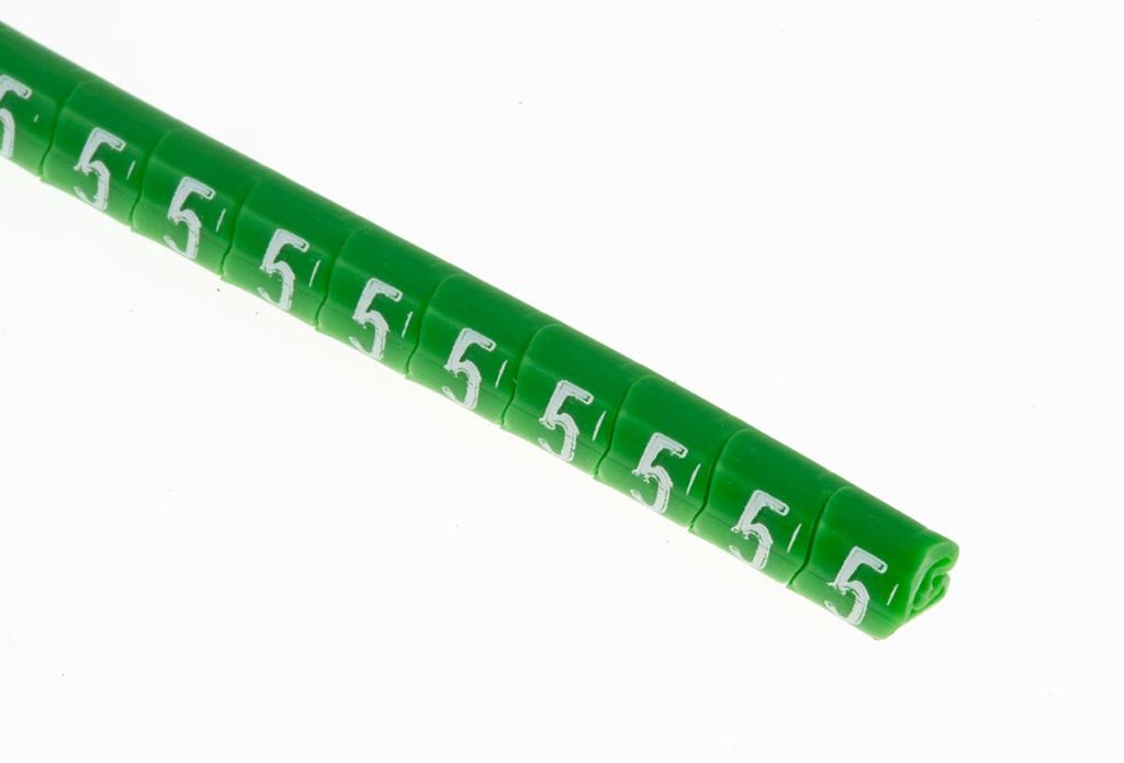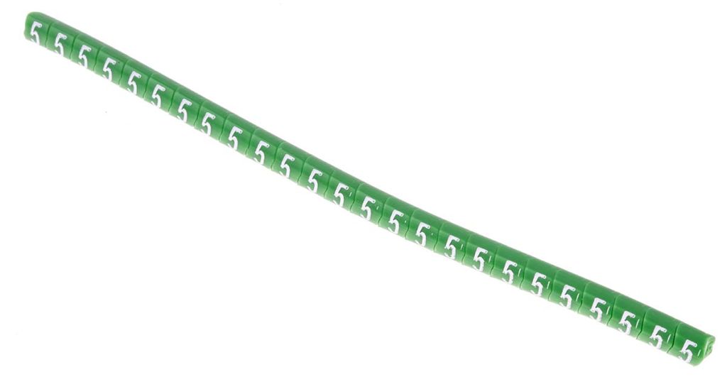 | Product description | HellermannTyton Helagrip Slide On Cable Markers, Pre-printed "5", White on Green, 1 → 3mm Dia. Range |