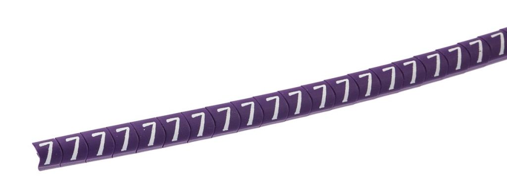 Product description HellermannTyton Helagrip Slide On Cable Markers, Pre-printed "7", White on Violet, 2 → 5mm Dia. Range