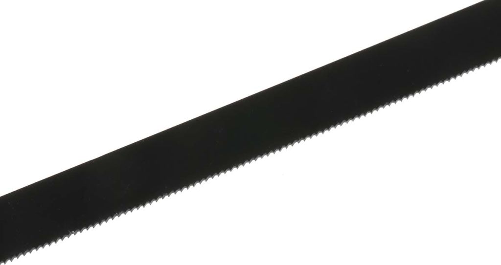 The heavy-duty hacksaw is supplied with a bi-metal carbon steel blade, suitable for cutting wood, plastic and some metals. The blade can easily be replaced and its tension adjusted to suit the task at hand.