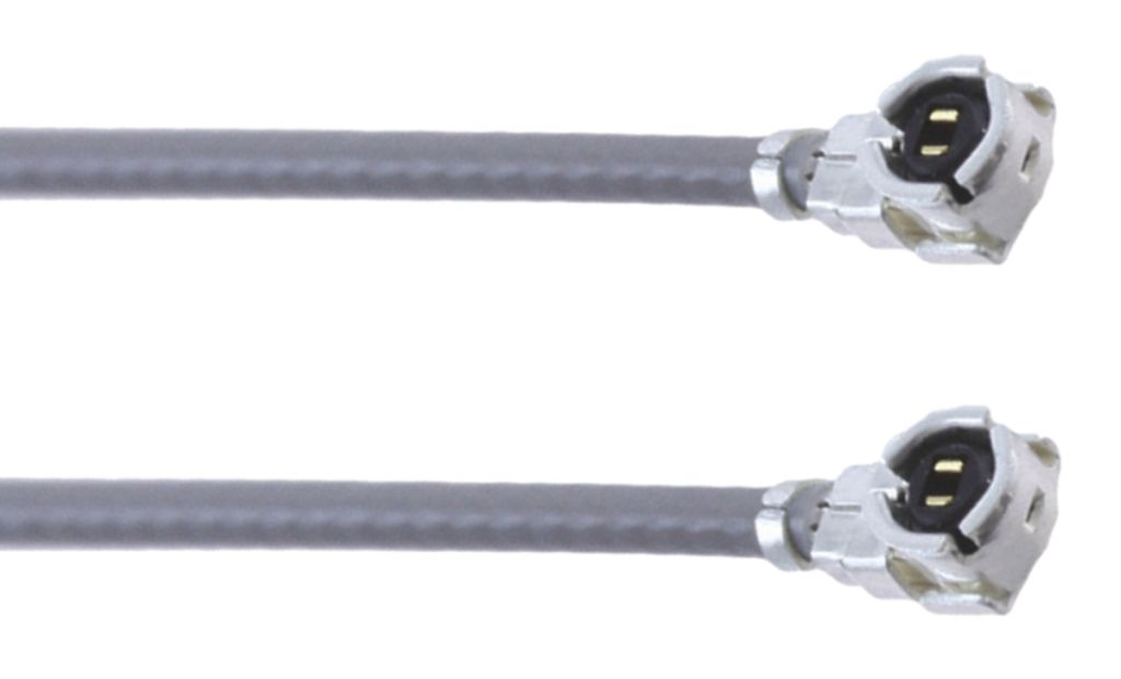 U.FL cable assemblies consisting of a coaxial cable terminated with an ultra small, lightweight U.FL plug. These U.FL plugs have a high frequency performance from DC to 6 GHz with a V.S.W.R of 1.3 to 1.5 max. This performance enables them to meet the frequency requirements of a wide range of miniature devices. The plugs are terminated with ultra fine coaxial cable with a 0.81 mm diameter for a secure and stable connection. A tactile click is produced when fully mated with the U.FL series receptacle connector confirming a complete electrical and mechanical connection. Heights of 1.9 mm, 2.3 mm and 2.4 mm can be achieved when mated. These U.FL cable assemblies are available as single ended or double ended and have various U.FL plug and cable sizes