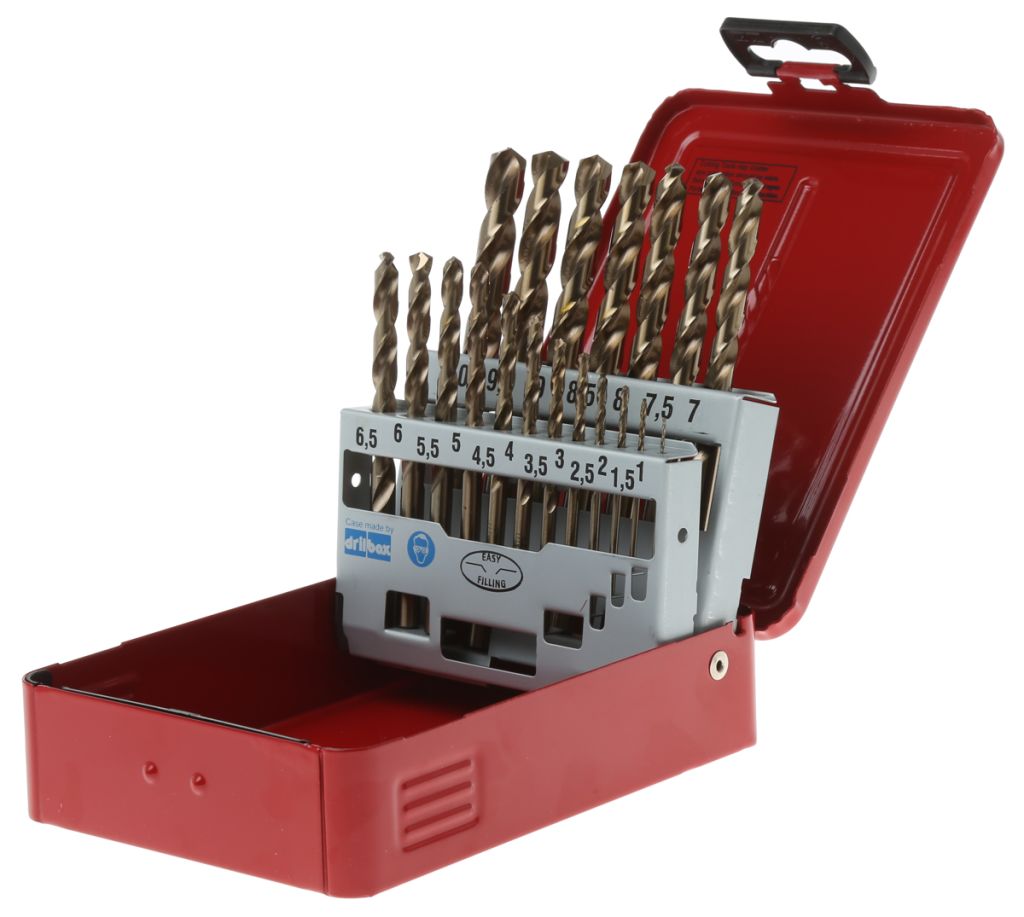 Introducing the Dormer (A295 series) set of professional A777 HSS-E drill bits that have been bronze coated and additionally alloyed with cobalt for an excellent performance. Bits are suitable for a multitude of jobs and materials feature a longer shaft compared to other standard drill bits and can be used in both hand and machine drills. Suitable for drilling metal, wood and plastic along with a range of other materials, jobber drill bits feature right-hand cutting tip with 135° cutting angle This set has been manufactured with the high-quality and safety of use in mind to meet requirements of both professionals and DIY enthusiasts. The set is supplied in a handy metal case with numbered drill bits slots.