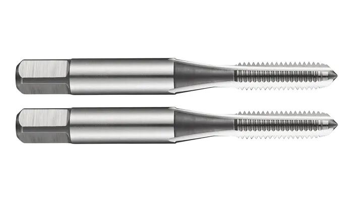 Each set consists of a roughing tap bit which has a five-thread entry and the finisher has two. The tap bit tolerance class is 6H, the cutting angle is 10° and the tap flutes are straight.