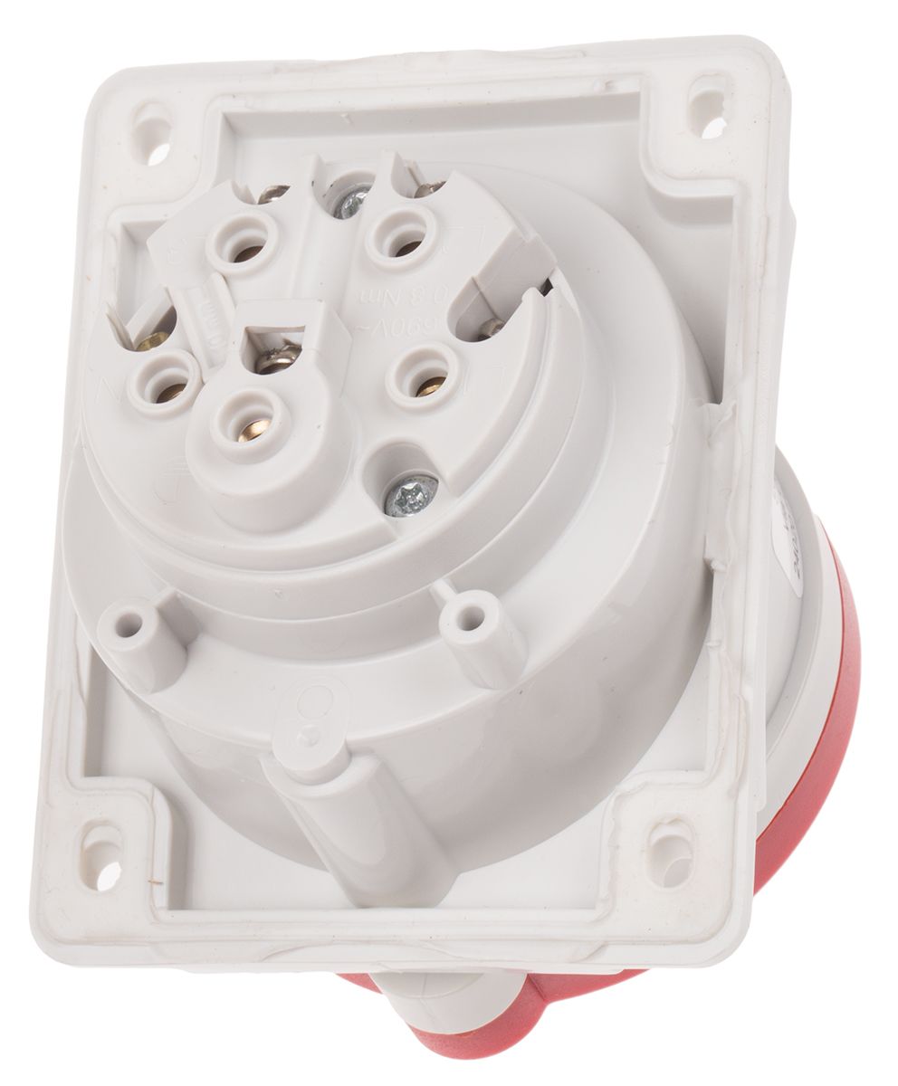 Product description Scame IP44 Red Panel Mount 3P+N+E Heavy Duty Power Connector Socket, Rated At 16A, 415.0 V