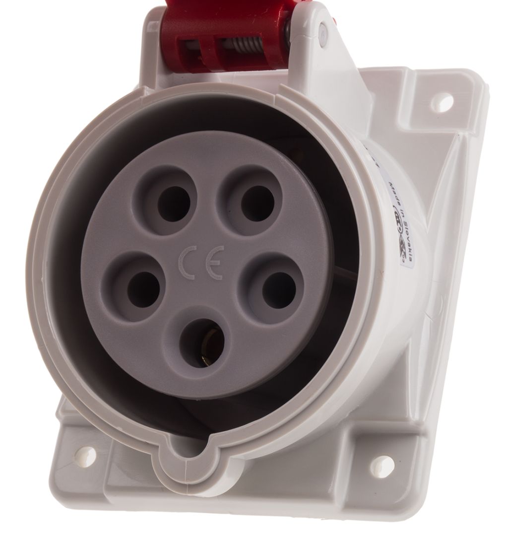 | Product description | Scame IP44 Red Panel Mount 3P+N+E Heavy Duty Power Connector Socket, Rated At 16A, 415.0 V |