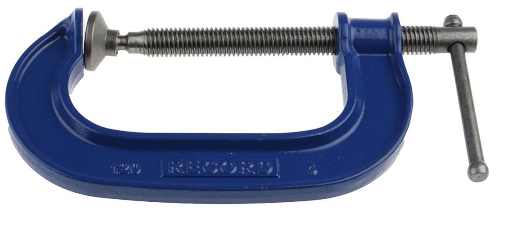 You should always use a G clamp which is a suitable size to hold your workpiece, if not there is a chance of bending the frame and damaging the screw. The size can be measured by its jaw opening (how far the mouth of the jaws can open) and the depth. These G clamps from Irwin area available in 4 sizes to choose from: