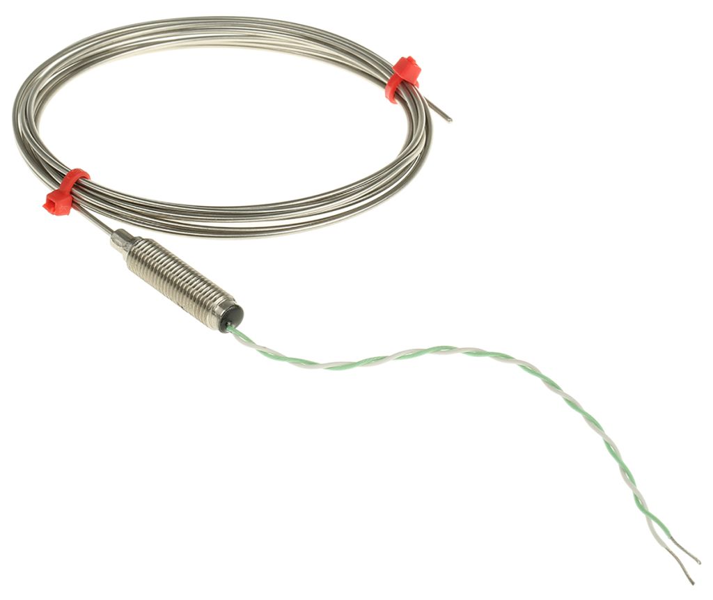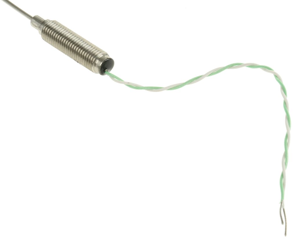 From RS Pro a range of type K thermocouple temperature sensors or probes that conform to IEC 584 specifications. These thermocouple temperature probes have durable construction with a 310 stainless steel mineral insulated flexible probe sheath that can be bent and formed to suit a wide range of applications. The thermocouple has a single element insulated hot junction for a reduction in electrical interference and a M8 x 1.00 mm fine pitch threaded pot seal with a temperature rating of 200°C.