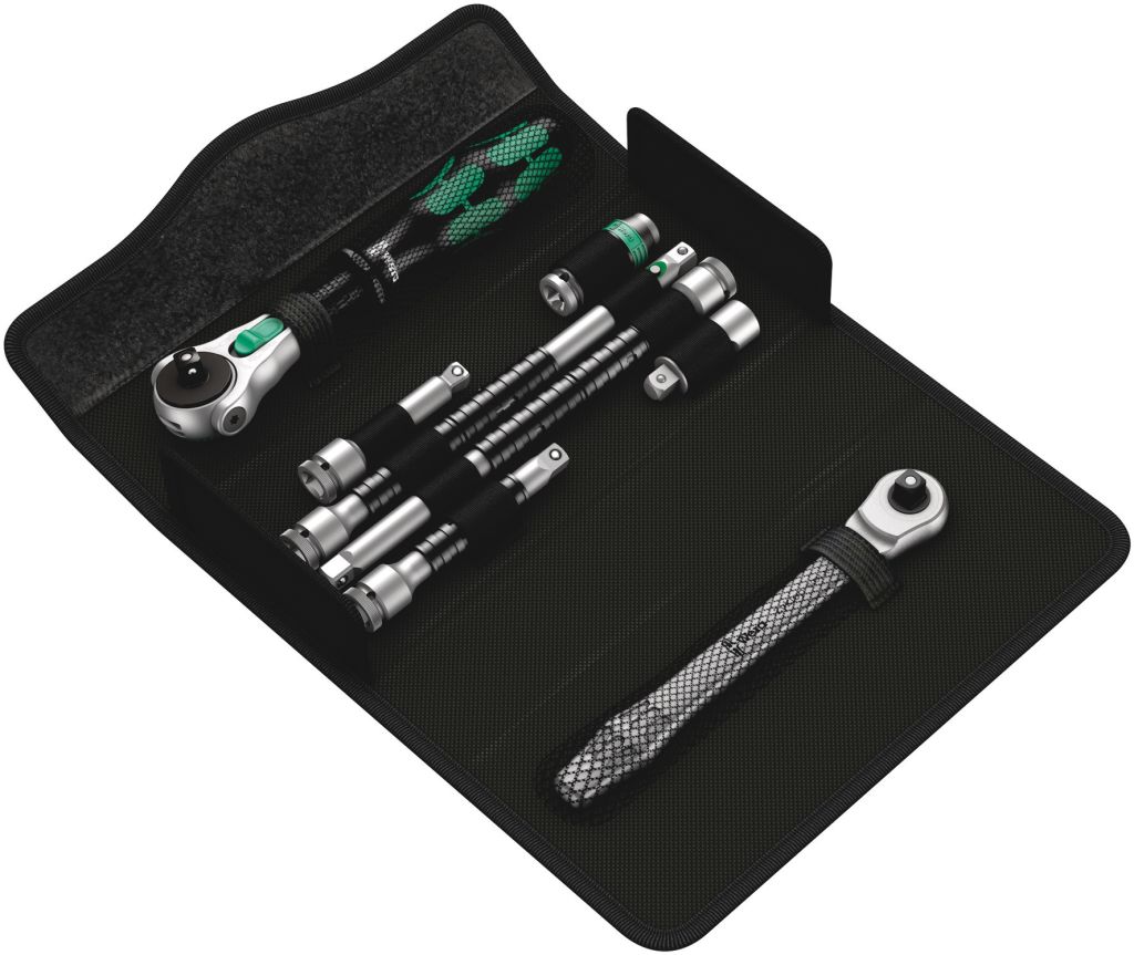 1/4in Zyklop socket and bit set complete with a Zyklop speed ratchet socket wrench. The Zyklop speed ratchet is designed for fast work with a flywheel design and free turning sleeve. Supplied in a compact textile box