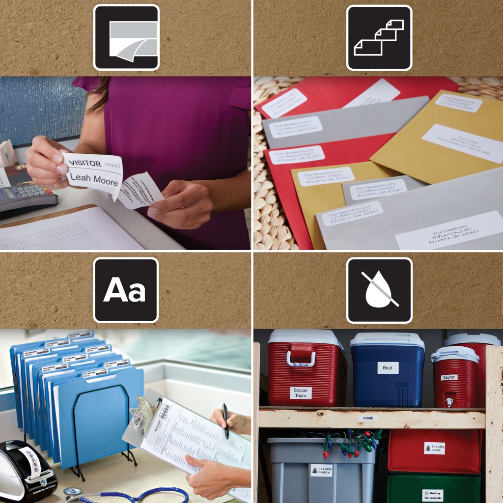 | Product description | Dymo Black on White Label Printer Tape & Label, 102 x 59mm Label Size |