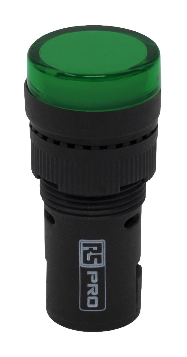 | Product description | RS PRO, Panel Mount Green LED Pilot Light, 16mm Cutout, IP40, Round, 120 V ac/dc |