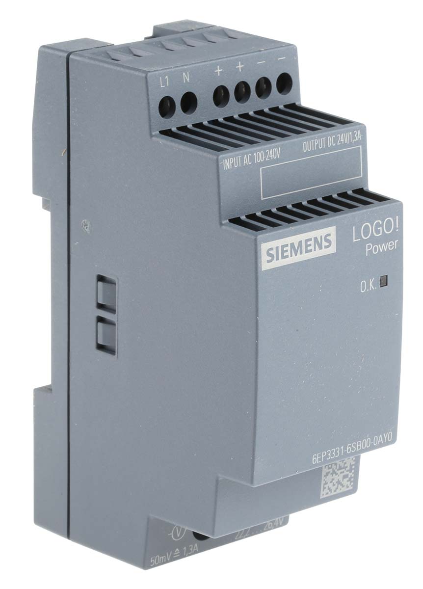 | Product description | Siemens LOGO!POWER Switch Mode DIN Rail Power Supply 100 → 240V ac Input, 24V dc Output, 1.3A 31W |