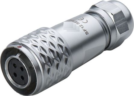 From RS Pro, these push-pull sockets are serious contenders for your application. The convenient push-pull connection, makes it perfect in situations where accidental disconnects occur. That coupled with the IP67 rating, makes sure that this industrial connector excels in harsh environments. When choosing a female connector, this version should really be one you consider.