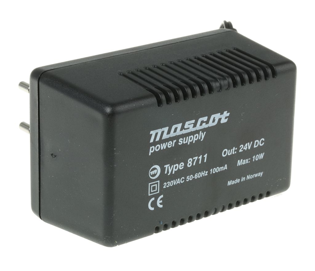 | Product description | Mascot, 10W Plug In Power Supply 24V dc, 416mA, 1 Output AC/DC Adapter, 2-Pin Euro |