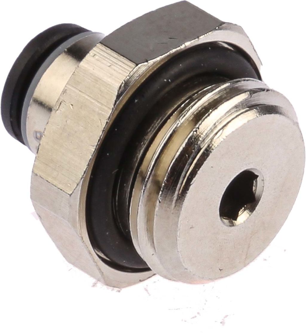 The 3101 fittings allow plastic pneumatic tubing to be connected to threaded ports. They can be tightened with a socket wrench or adjusted using an Allen key internally.