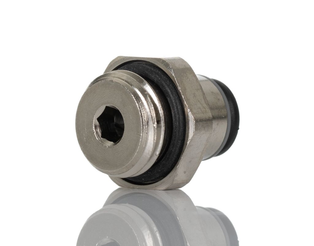 The 3101 fittings allow plastic pneumatic tubing to be connected to threaded ports. They can be tightened with a socket wrench or adjusted using an Allen key internally.