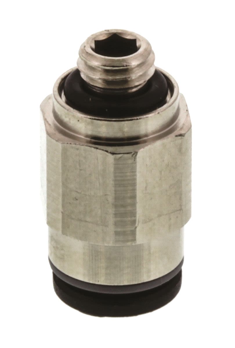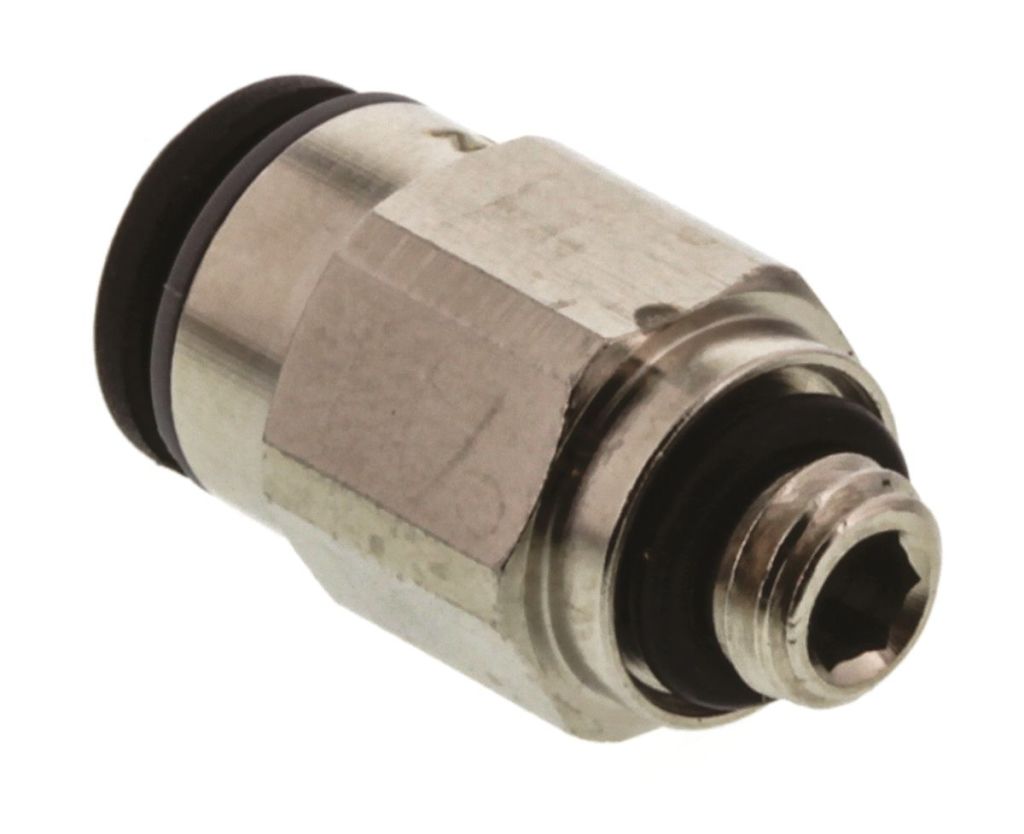 The 3101 fittings allow plastic pneumatic tubing to be connected to threaded ports. They can be tightened with a socket wrench or adjusted using an Allen key internally.