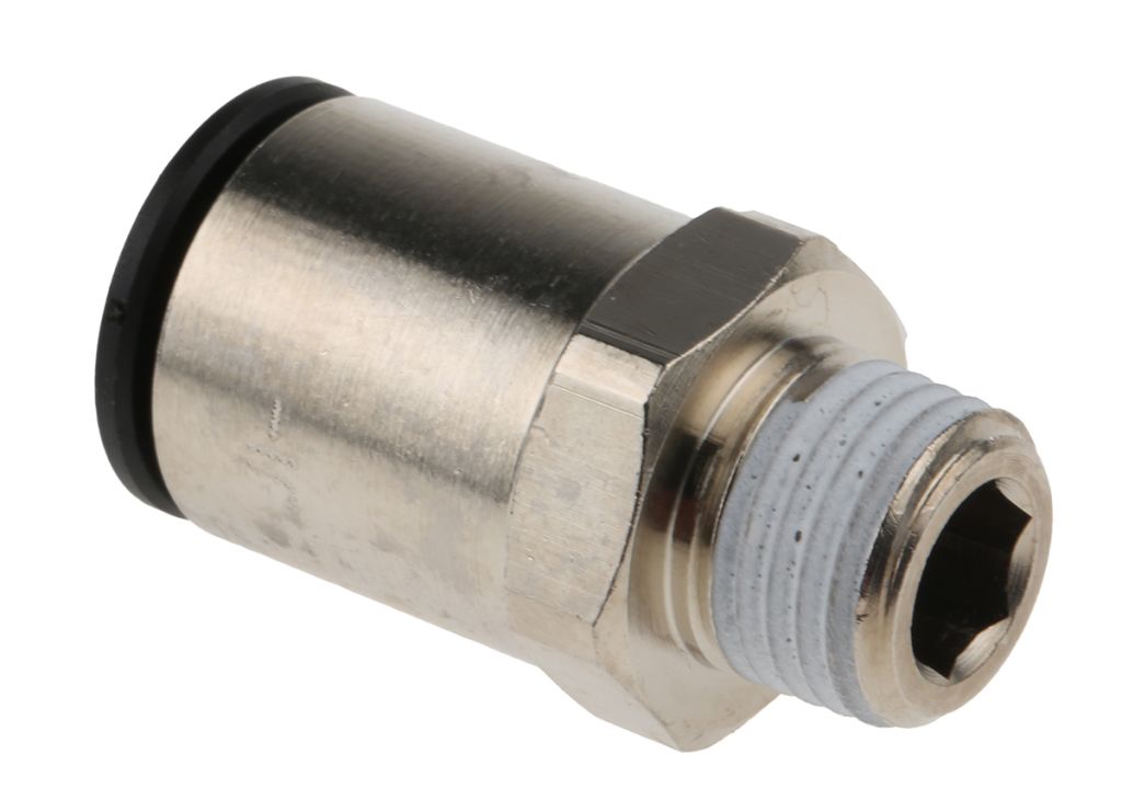 The 3175 fittings allow plastic pneumatic tubing to be connected to threaded ports. They can be tightened with a socket wrench or adjusted using an Allen key internally.
