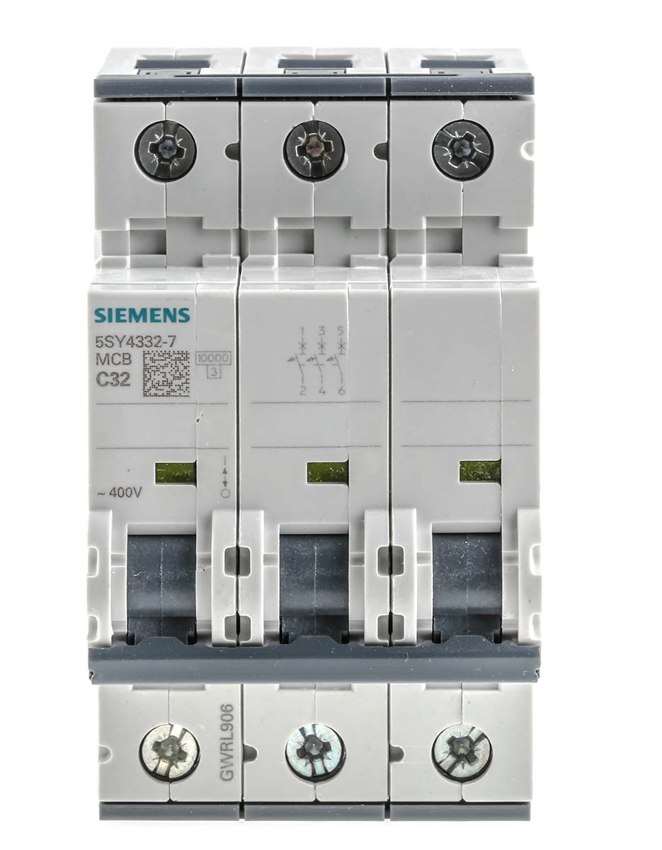 Siemens Sentron 32A MCB Mini Circuit Breaker, 3P Curve C, Breaking Capacity 10 kA, 400V
