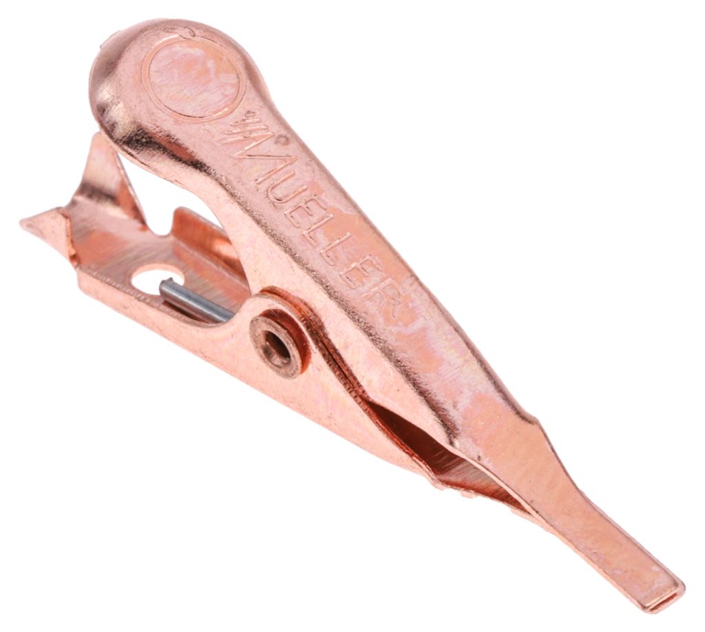 A concise offering of steel and copper alligator and crocodile clips from Mueller suitable for applications including grounding clips, test meters clips, battery terminal connection and many others that require a durable and hardwearing alligator or crocodile clip.