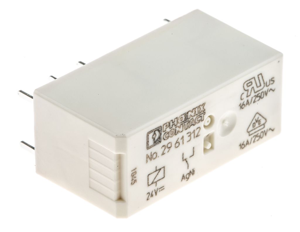 | Product description | Phoenix Contact, 24V dc Coil Non-Latching Relay SPDT, 16A Switching Current PCB Mount Single Pole, 2961312 |