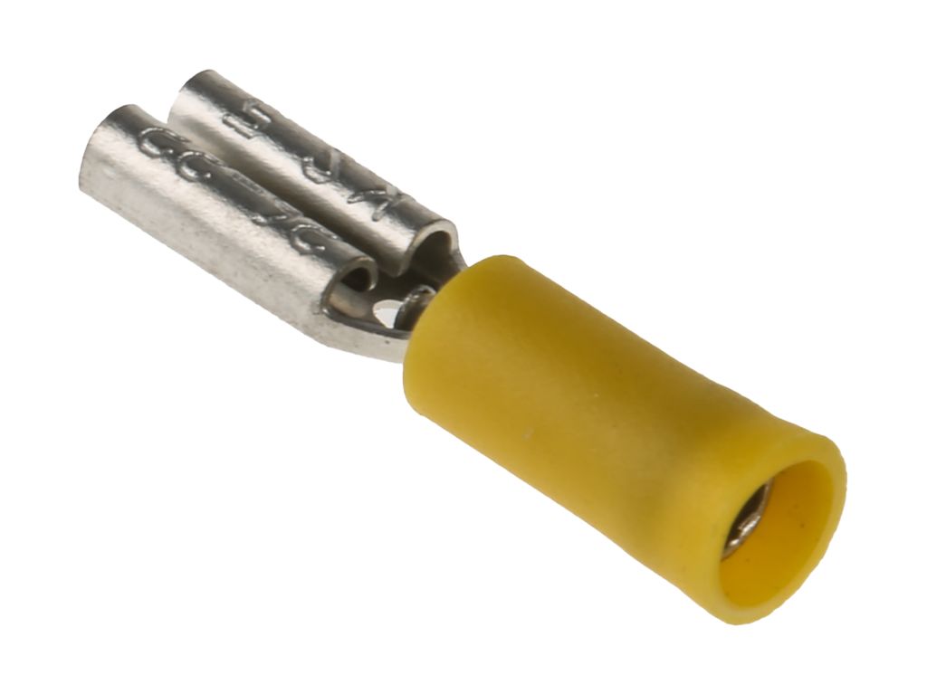 RS PRO Yellow Insulated Female Spade Connector, Receptacle, 2.8 x 0.5mm Tab Size, 0.2mm² to 0.5mm²