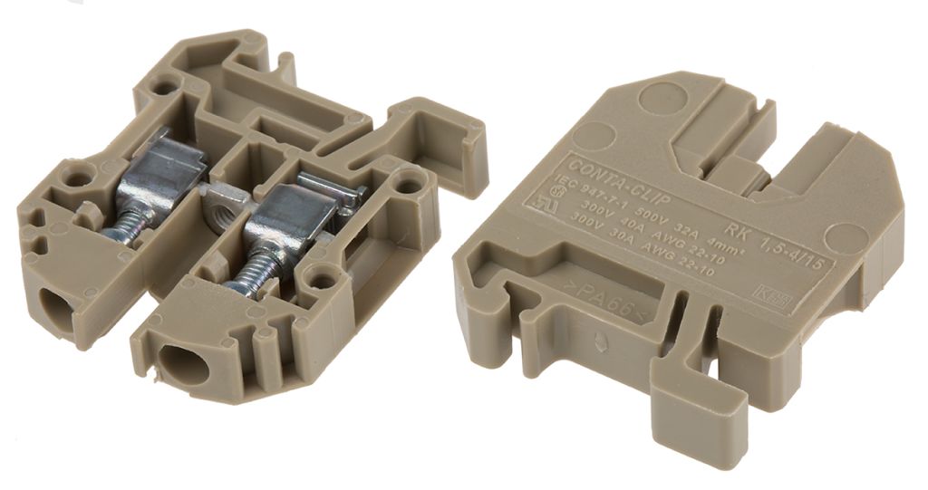| Product description | RS PRO Brown Standard Din Rail Terminal, 22 → 10 AWG, 0.2 → 4mm², 500 V |
