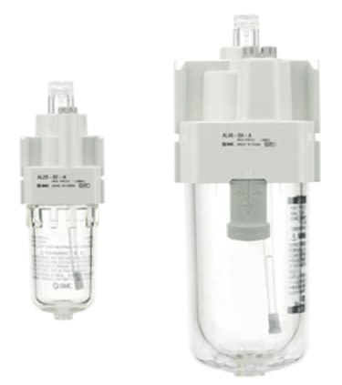 Modular lubricators from SMC. The AL series of modular lubricators are interchangeable to meet your requirements. The improvements made to the AL series of lubricators means this range is lighter than before and the bowl guard is now transparent so users can easily monitor their unit.