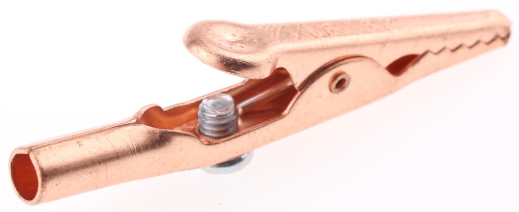 A concise offering of steel and copper alligator and crocodile clips from Mueller suitable for applications including grounding clips, test meters clips, battery terminal connection and many others that require a durable and hardwearing alligator or crocodile clip.