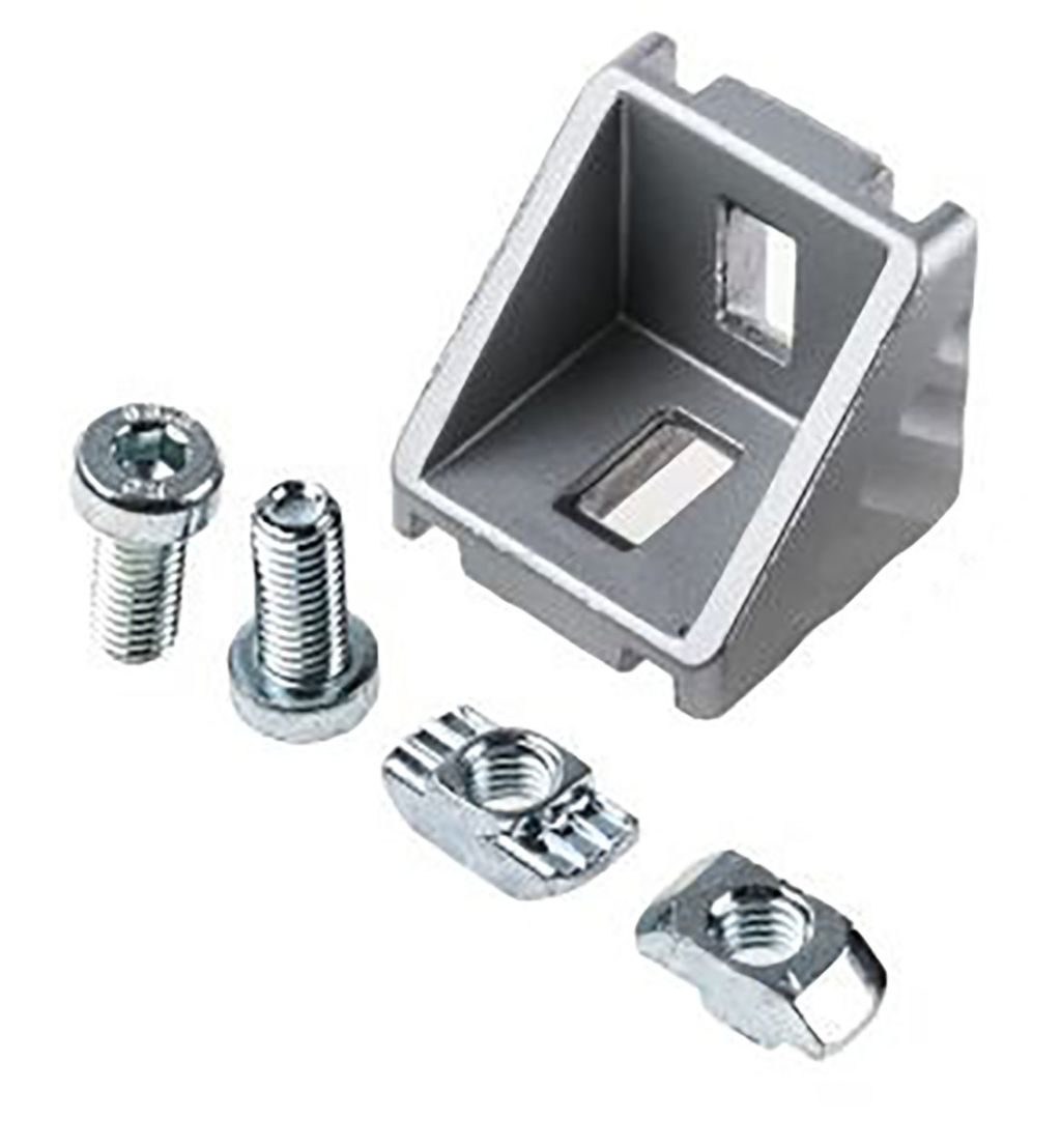 These Bosch designLINE Angle Brackets have special silver paint to give an attractive high-quality design for all MGE fixtures. They can be used to make a strong connection between 20 x 20, 30 x 30, 40 x 40, 45 x 45 or 50 x 50 profiles at an angle of 90°.