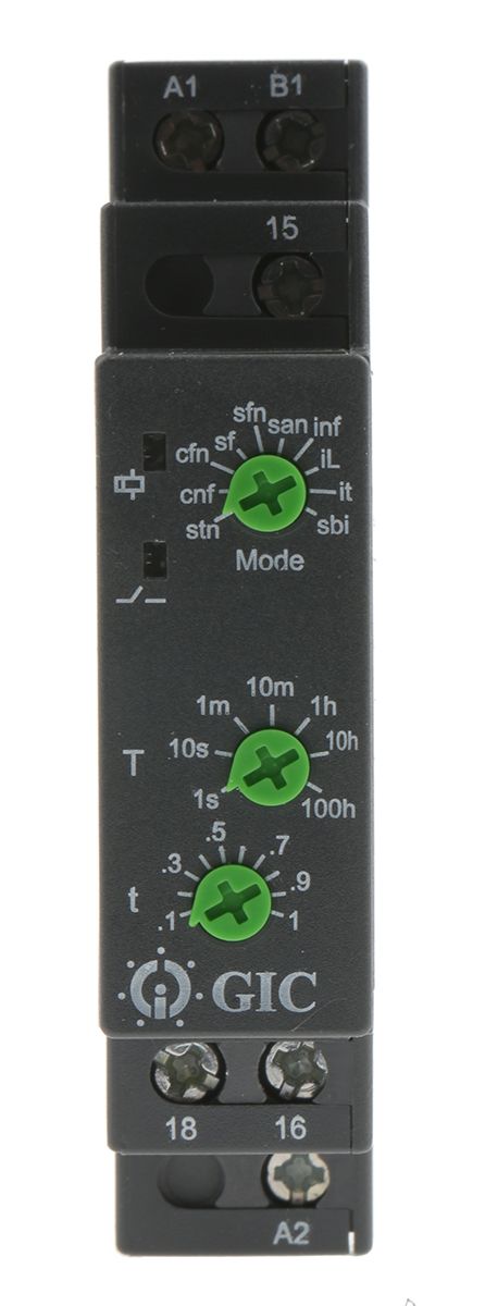 | Product description | GIC SPDT Multi Function Timer Relay, 12 → 240V ac/dc 0.1 s → 100h, DIN Rail Mount |