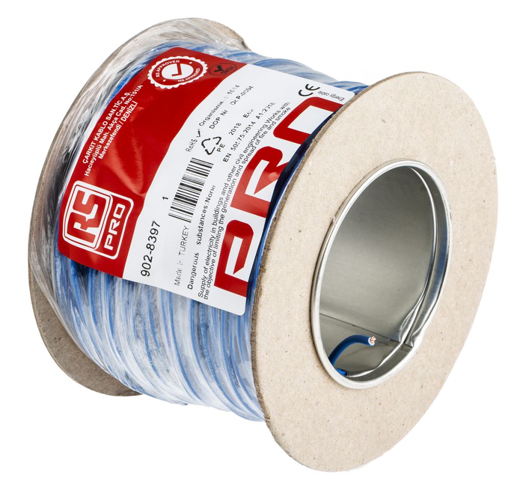 | Product description | RS PRO Blue 1.5 mm² Power Cable, 27/0.25 mm, 100m |