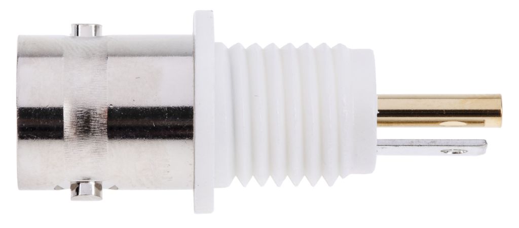 From RS PRO, this BNC coaxial connector is designed for use with coaxial cables, and features a bulkhead and screw on nut for mounting to panels and chassis.