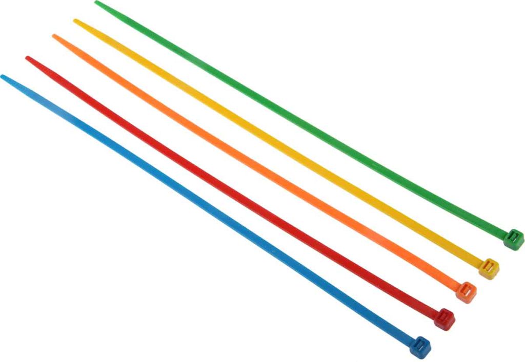 Each pack contains 250 non-releasable cable ties, comprising 50 each of yellow, blue, red, green and orange to enable colour coding of cables or components. Ideal for cable and wire management.