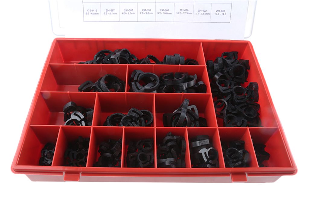 | Product description | RS PRO 200 Piece Nylon Hose Clip Kit, 5.6 → 6.8mm and 26.5 → 30.4mm Inside Diameter |