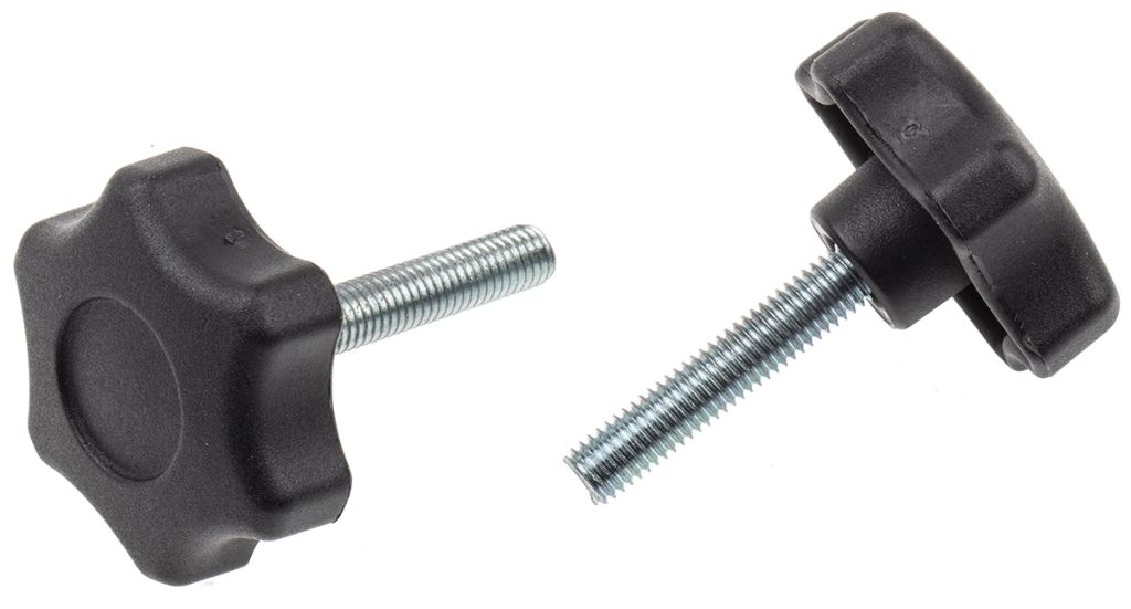 Scallop-shaped handwheels provide an easily-gripped shape, with a varying number of lobes depending on the grip and pressure required. The knobs are fitted with either a protruding screw (male), a threaded insert (female) or through threads depending on the requirements of the application.