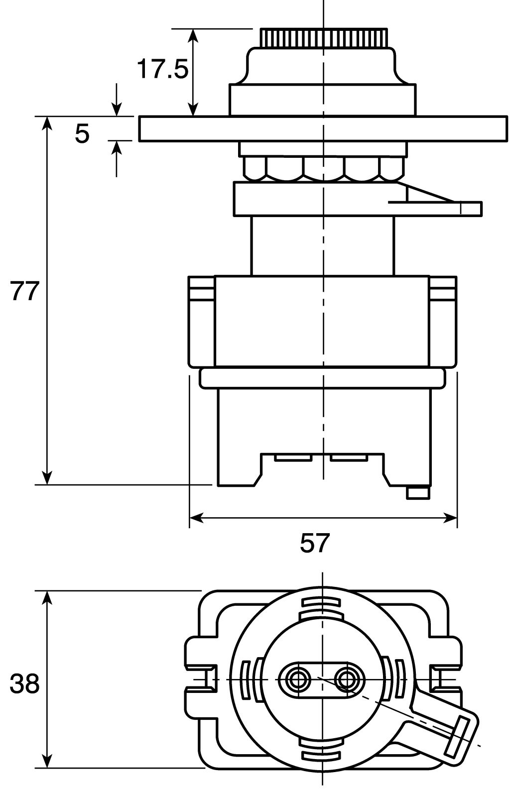 Dimensions 57 x 38 x 77mm (behind panel); front of panel depth 17.5mm