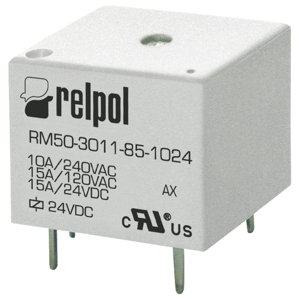 Relpol RM50 series miniature relays for general purpose applications. The RM50 relays are designed for PCB mounting and are suitable for a wide range of applications such as automobile, machine and electronic equipment.