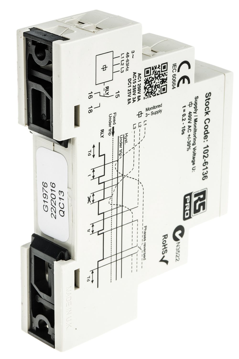 | Product description | RS PRO Phase, Voltage Monitoring Relay With SPDT Contacts, 3 Phase, Undervoltage |