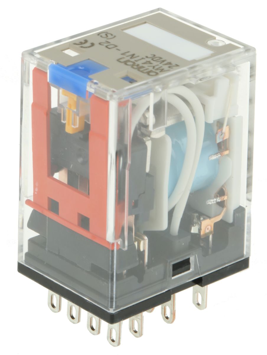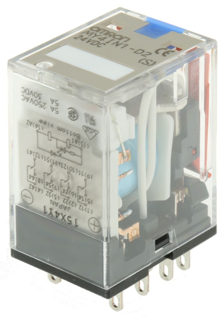 Product description Omron, 24V dc Coil Non-Latching Relay 4PDT, 5A Switching Current Plug In, 4 Pole, MY4IN1-D2 DC24(S)