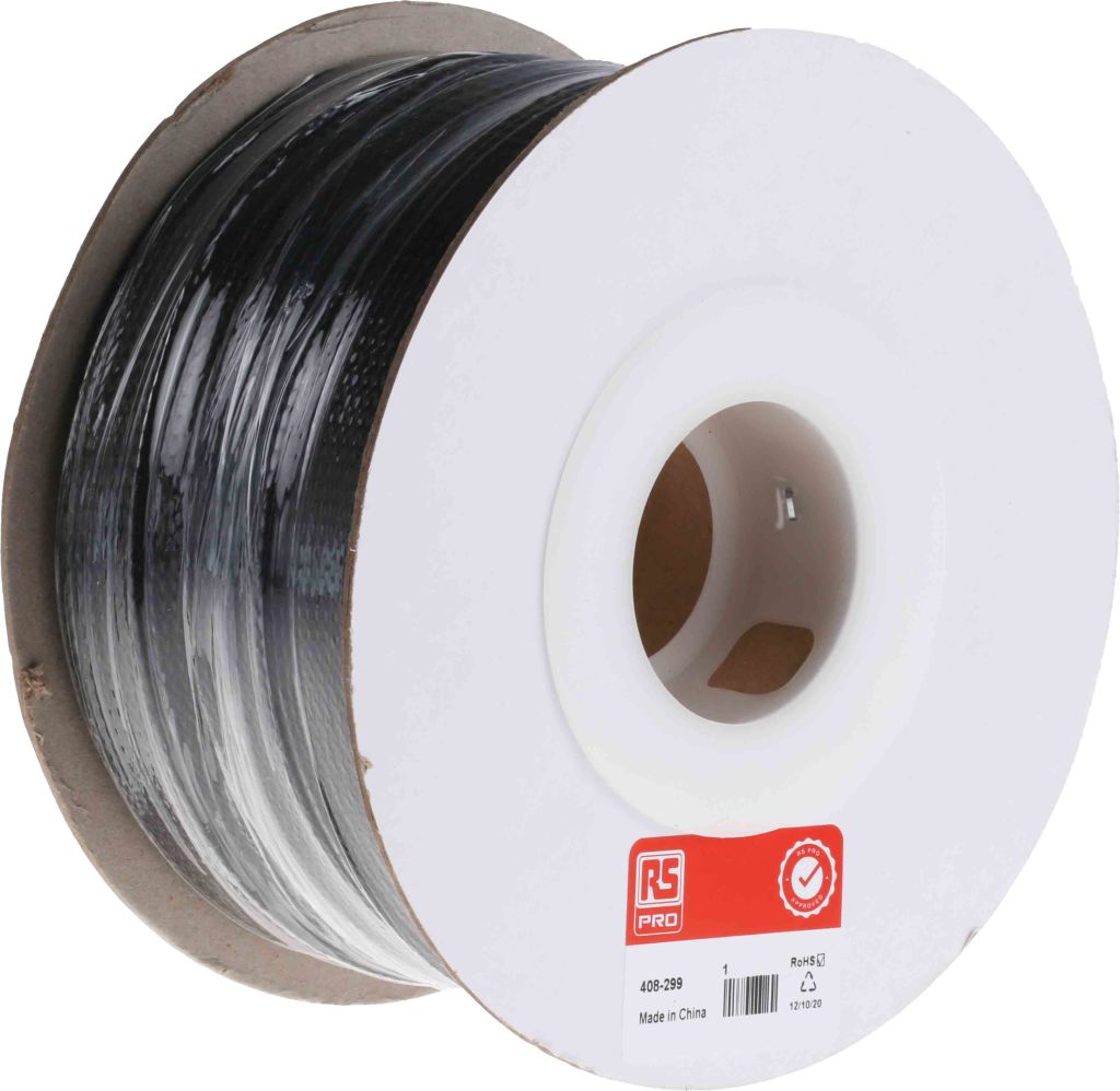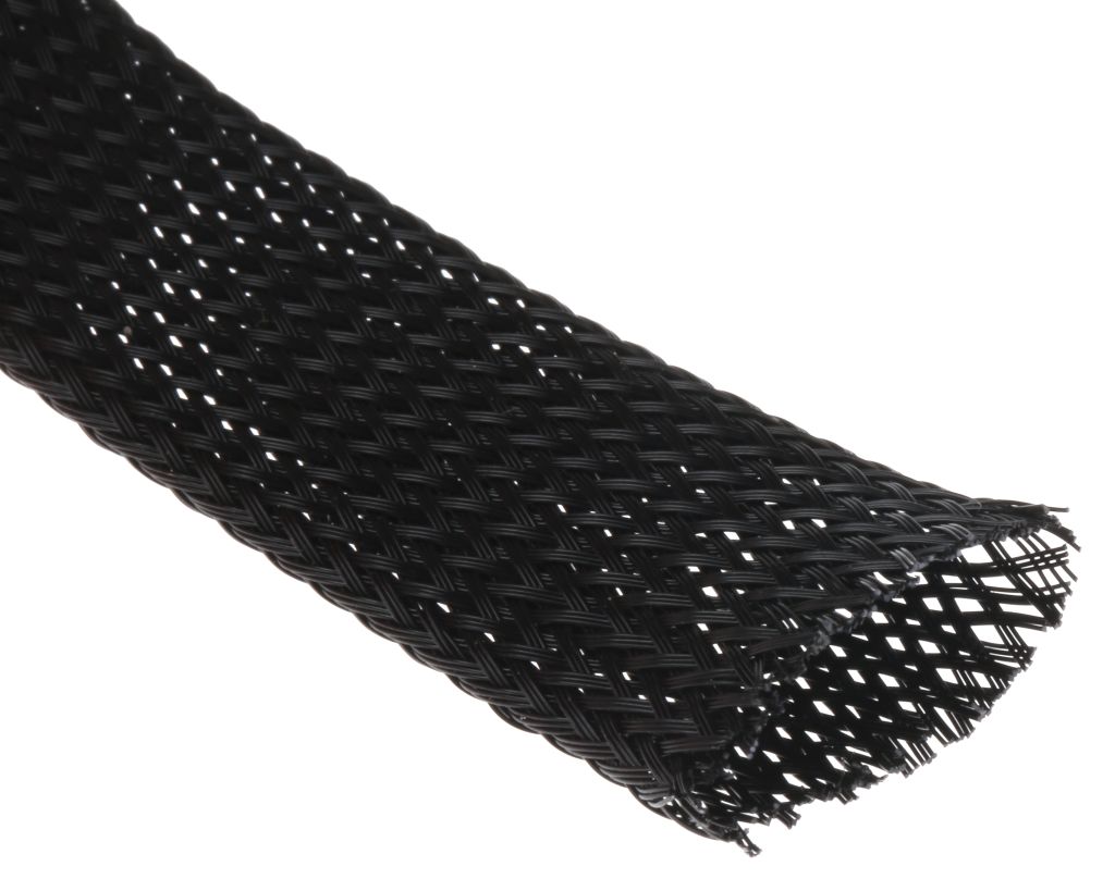 RS PRO Expandable Braided PET Black Cable Sleeve, 19mm Diameter, 30m Length