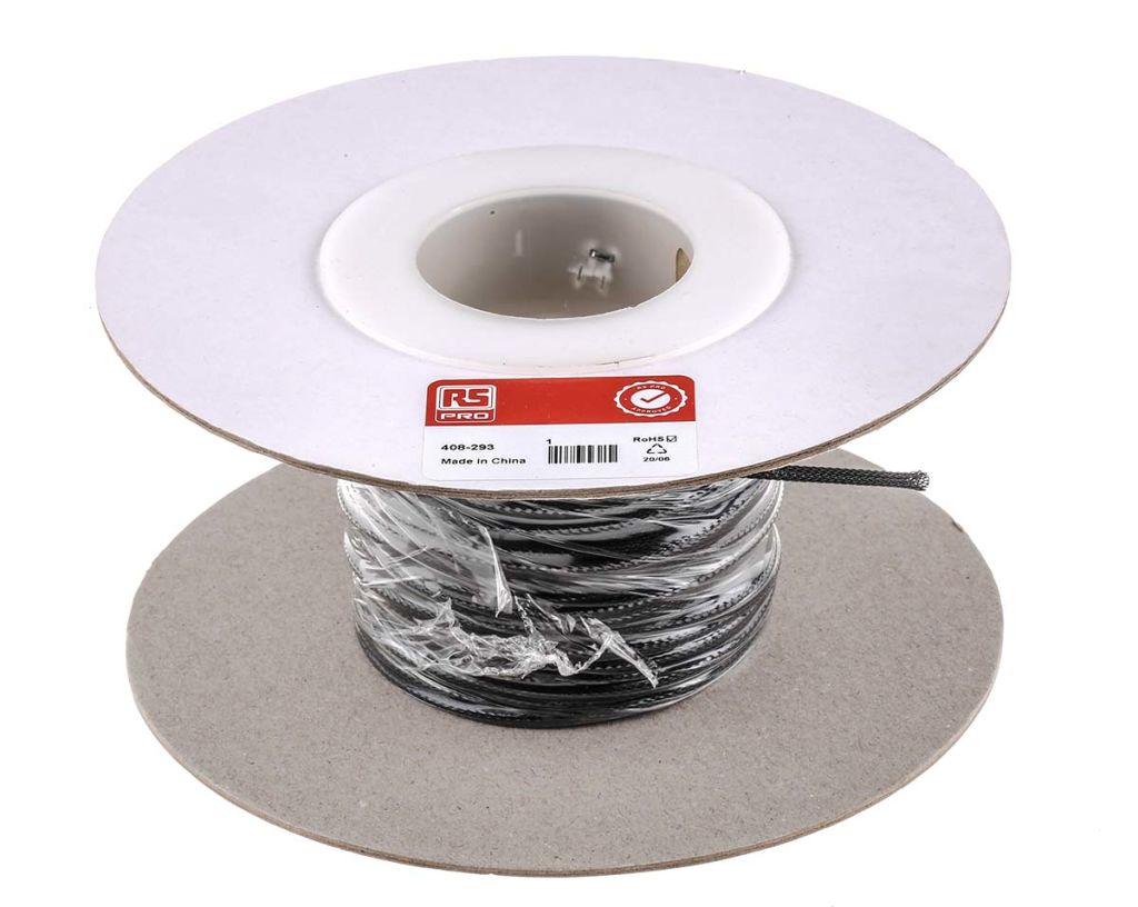 From RS PRO a range of high-quality expandable cable sleeving made from durable and environmentally friendly PET (Polyester) monofilament yarns. Electrical wires and cables are simply routed through the sleeve and the flexible construction of the sleeve expands to accommodate a wide range of cable diameters. The unique woven braided construction of this PET cable sleeving and its high expansion ratio allows it to be quickly and easily installed over large connectors, wire bundles and irregular shapes.