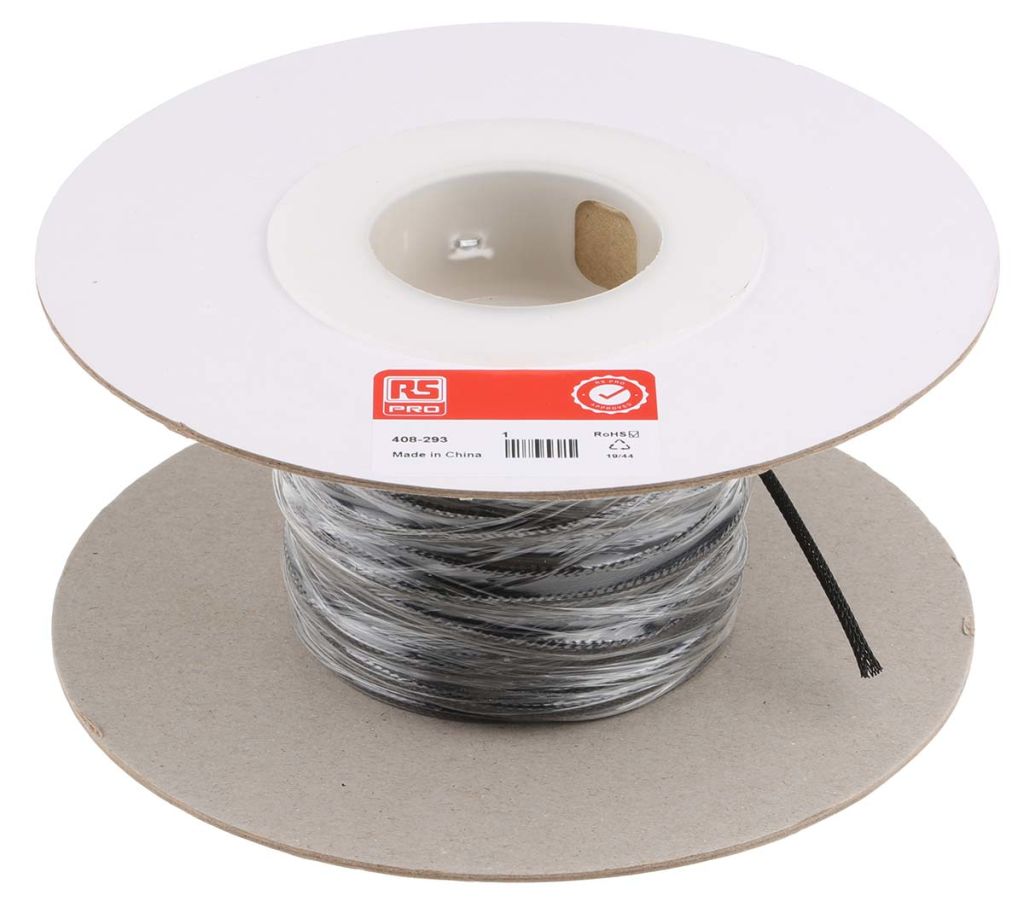 | Product description | RS PRO Expandable Braided PET Black Cable Sleeve, 3mm Diameter, 30m Length |