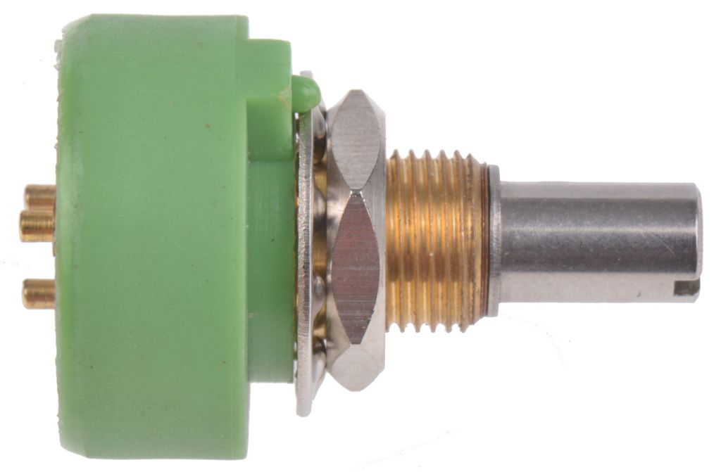 This series of RS potentiometers with stop provide resistance options of 1kΩ to 100kΩ and are constructed from a long life conductive plastic resistance element and a sturdy low profile plastic body. These potentiometers offer noise free output due to a precious metal wiper.