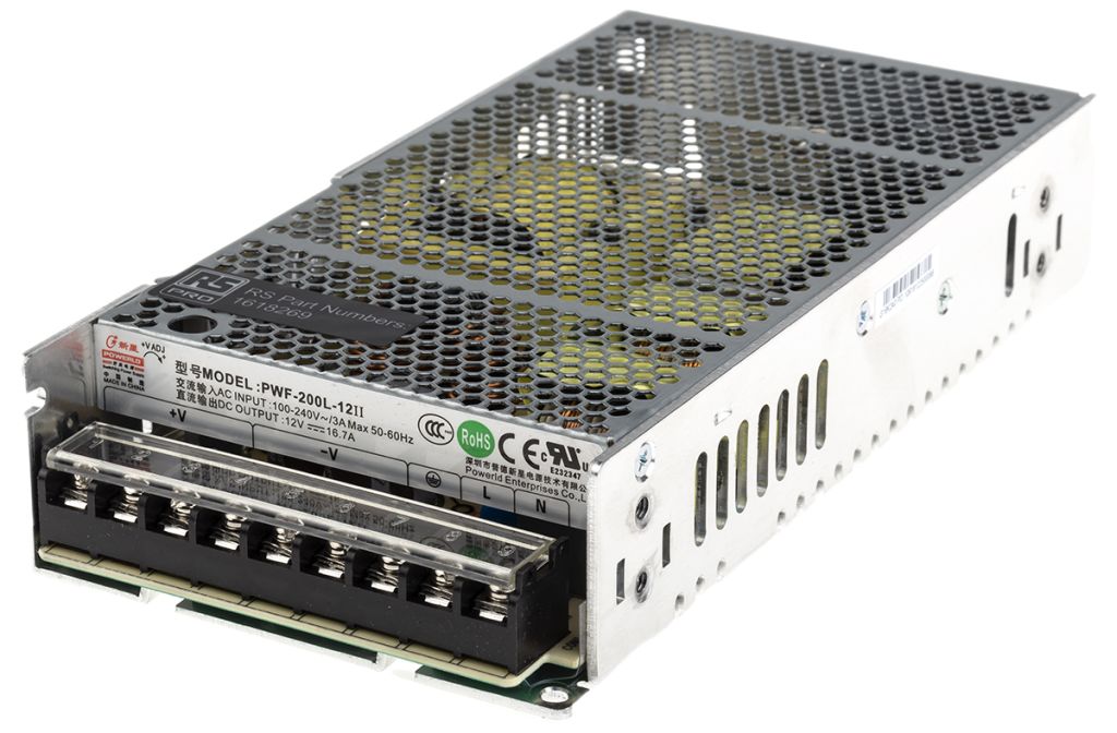 | Product description | RS PRO Embedded Switch Mode Power Supply SMPS, 12V dc, 16.7A, 200W Enclosed |