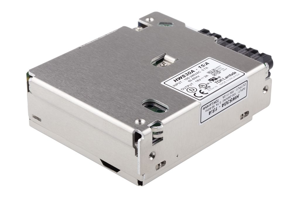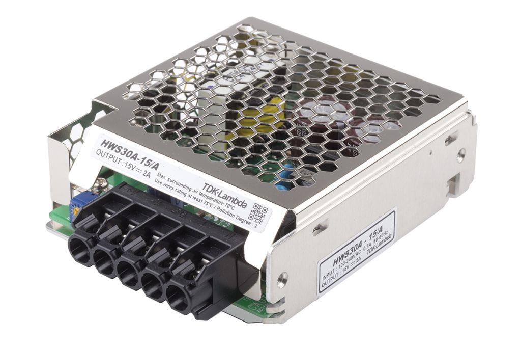 The TDK-Lambda HWS-A series of AC-DC power supplies, comprises five models rated from 15-150W. A significant upgrade of the established HWS series, which is still compatible with the new HWS-A series to enable easy upgrade. This switch mode power supply is up to 12% lighter compare to the previous series and features up to 91% efficiency and a very low power consumption at no load, contributing to a reduction in environmental impact. The HWS-A power supplies operate from a universal input of 85-265Vac, The 50, 100 and 150W models include active power factor correction, the operating temperature of the HWS-A models range from -10 to +50°C at full load and up to 70°C with appropriate derating. Typical industrial applications of these switch mode power supplies include equipment used for factory automation, process control, LED display and signage, test and measurement, broadcast and communications.