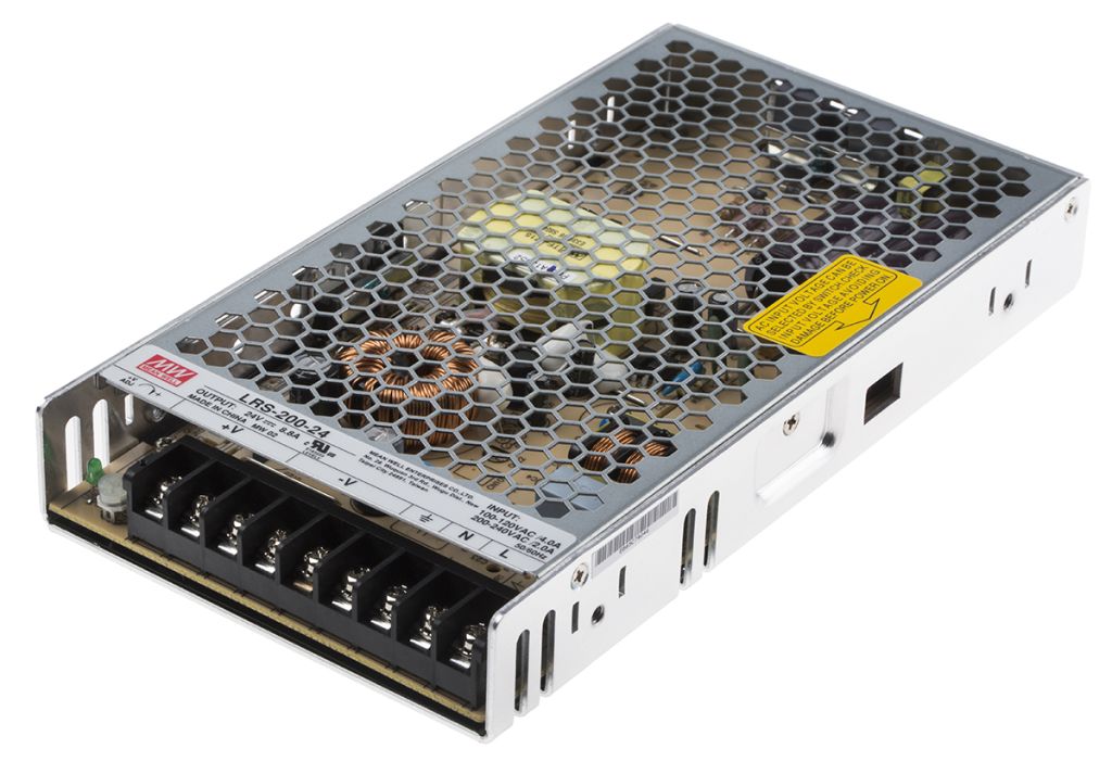 The LRS-200 series of single-output 200 W enclosed style power supply is a low profile, highly efficient enclosed product. The LRS-200 series has been designed for use within demanding applications, thanks to a metallic meshing & air convection to ensure optimum heat dissipation.