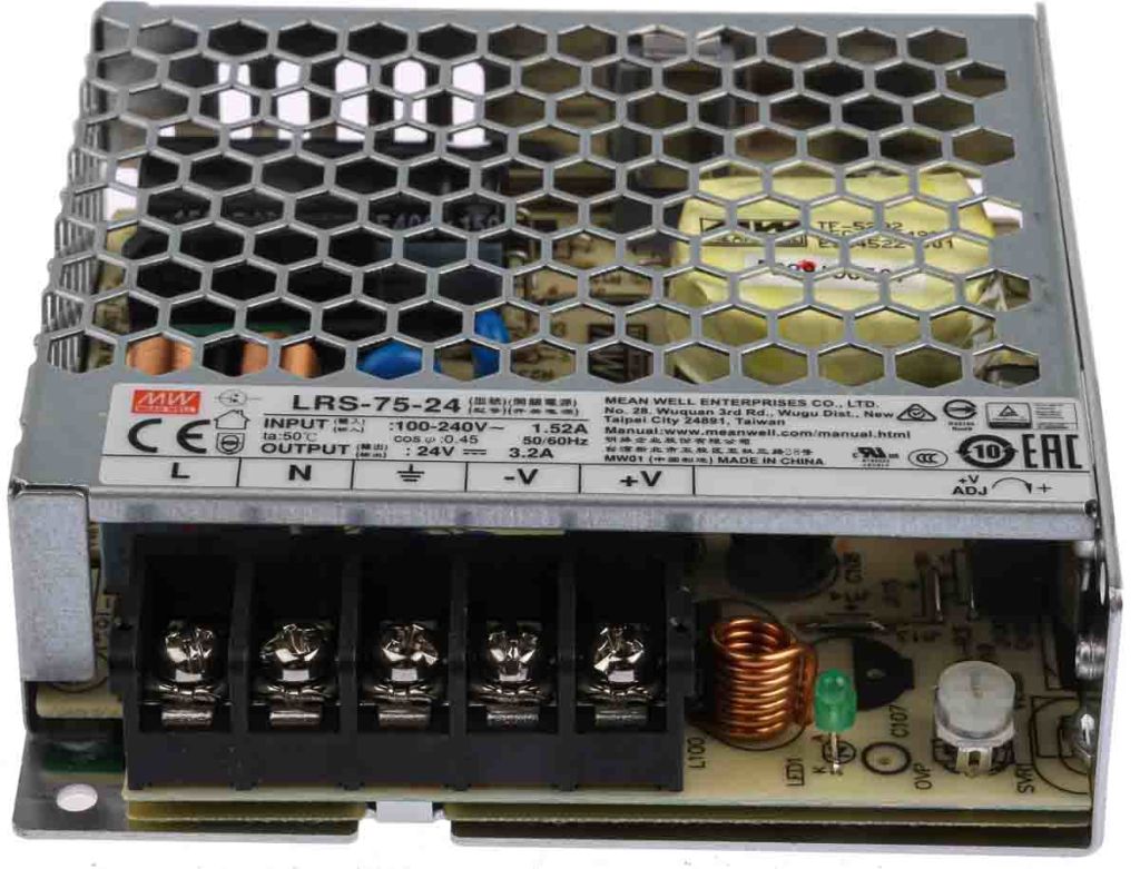 | Product description | Mean Well Embedded Switch Mode Power Supply SMPS, 24V dc, 3.2A, 76.8W Enclosed |