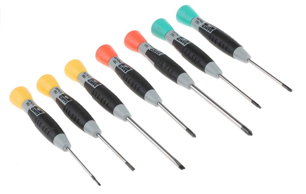 Precision screwdrivers are ideal hand tools to use on small, intricate devices like watches, calculators, mobile phones and other electronic devices. They are sometimes referred to as the jewel screwdriver. We offer the following Bahco precision screwdriver sets: